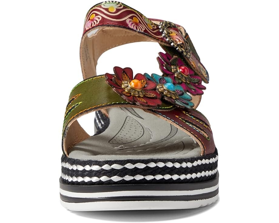 Обратите внимание, что из-за уникального дизайна обуви L'Artiste by Spring Step, расписанного вручную, точный дизайн может варьироваться от модели к модели. Будьте готовы подчеркнуть свой стиль в обуви L'Artiste by Spring Step Laga Flat. Сандалии в ярких расцветках, с эффектными цветочными украшениями из драгоценных камней и поразительными лазерными вырезами.