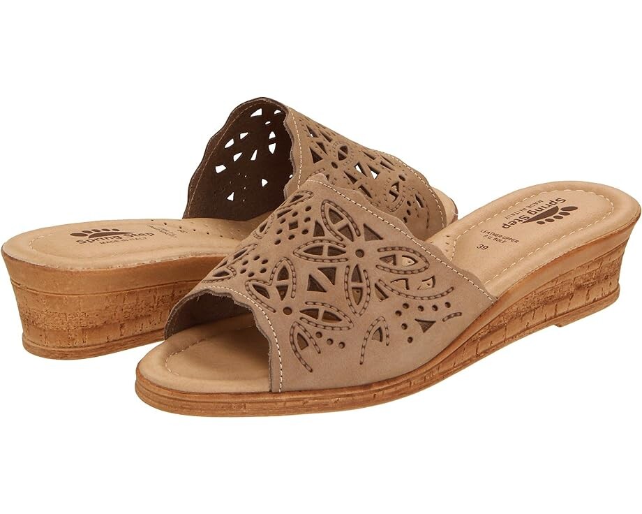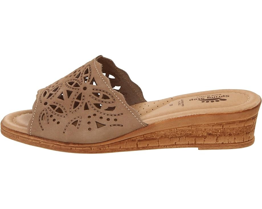 Если вы ищете непревзойденное блаженство, которое продлится весь день, шлепанцы на танкетке Spring Step Estella — правильный выбор для вас. Сандалии имеют верх из мягкой кожи с замысловатым дизайном, вырезанным лазером, что придает им женственную привлекательность.