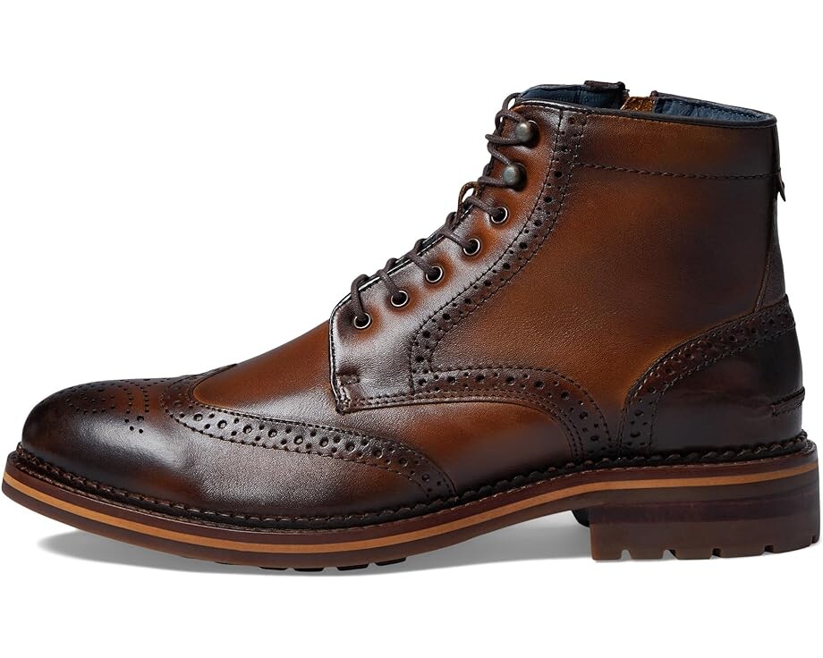 Ботинки Johnston & Murphy Connelly Wing Tip имеют верх из натуральной кожи, обработанный вручную. Овчина и влагоотводящая подкладка делают ее очень отталкивающей запахи. Съемная стелька из этиленвинилацетата имеет конструкцию XCFlex для максимальной амортизации и гибкости. Пена с эффектом памяти и покрытие из овчины/влагоотводящей сетки на стельке. Ботинки имеют голенище до щиколотки и шнуровку с миндалевидным носком.