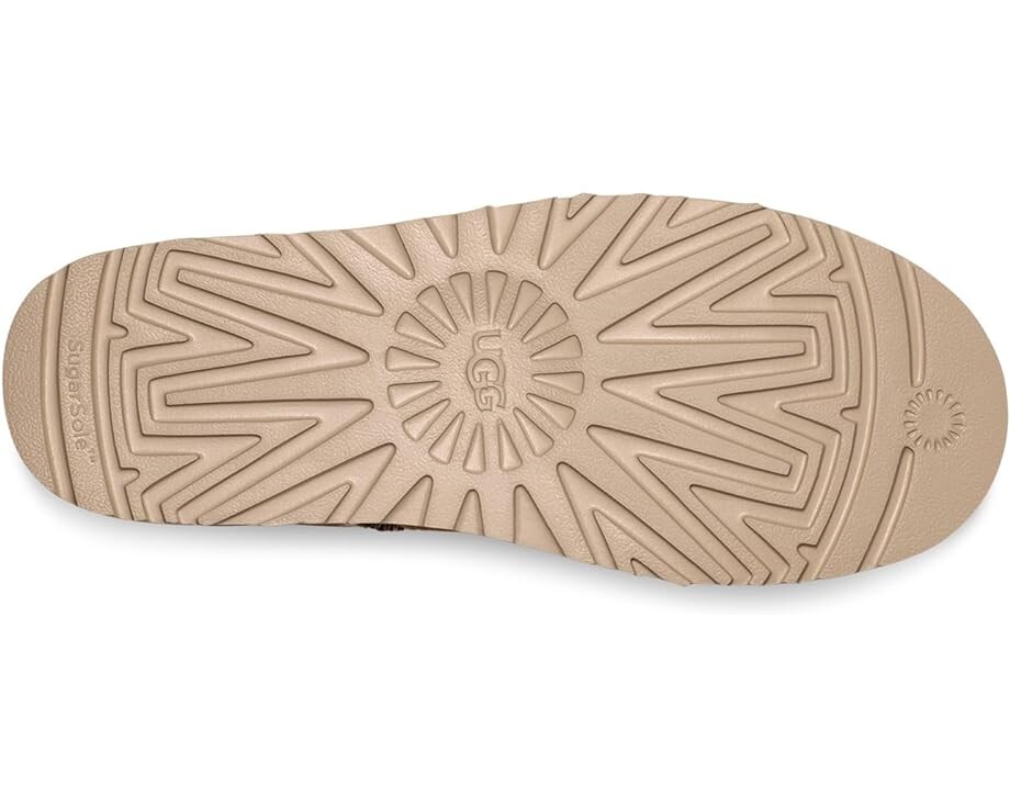 Обувь UGG Campfire Crafted Regenerate предназначена для повседневной деятельности на открытом воздухе или в помещении. 10-миллиметровый Twinface, полученный в результате регенеративного земледелия. Верх обуви выполнен из овечьей замши. Стелька и Подкладка из пенополиуретана содержат компаунд Susterra на растительной основе и 75% полиуретана, полученного из нефти. Туфли имеют закругленный носок, а также язычки для подтягивания спереди и сзади.