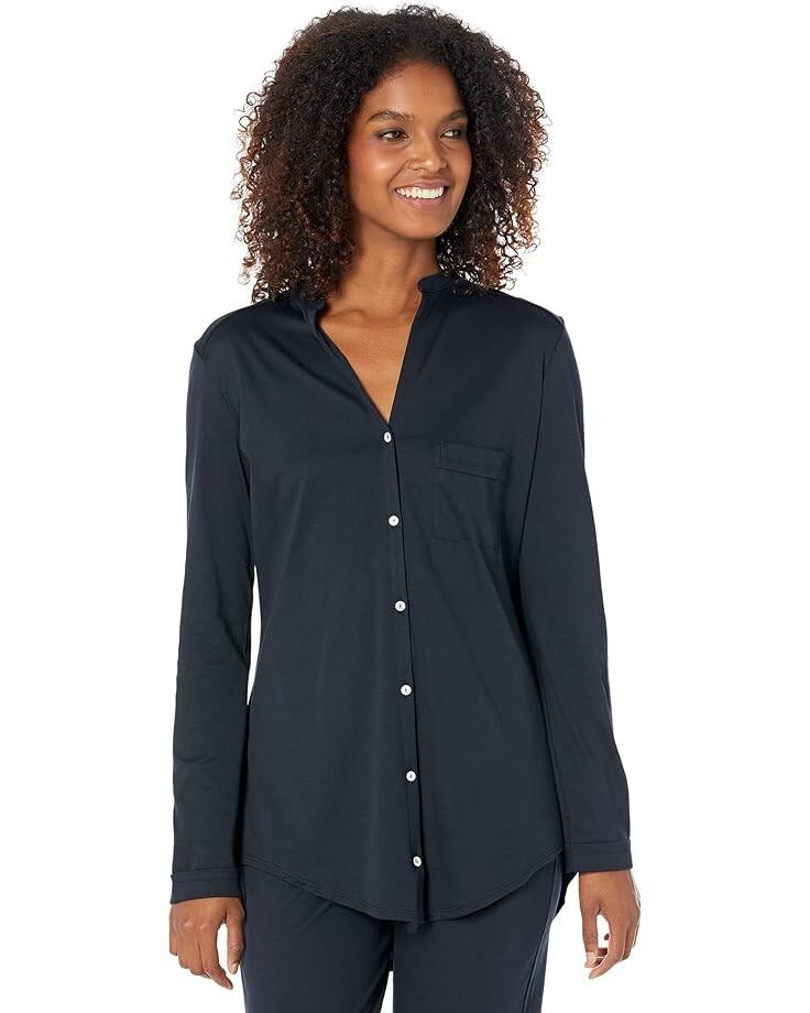 Пижамный комплект с длинными рукавами HANRO Pure Essence, изготовленный из мягкого мерсеризованного хлопка, имеет непринужденный силуэт, который идеально подходит для отдыха или сна. Топ с длинными рукавами имеет V-образный вырез, нагрудный карман, переднюю часть на пуговицах и прямой подол.