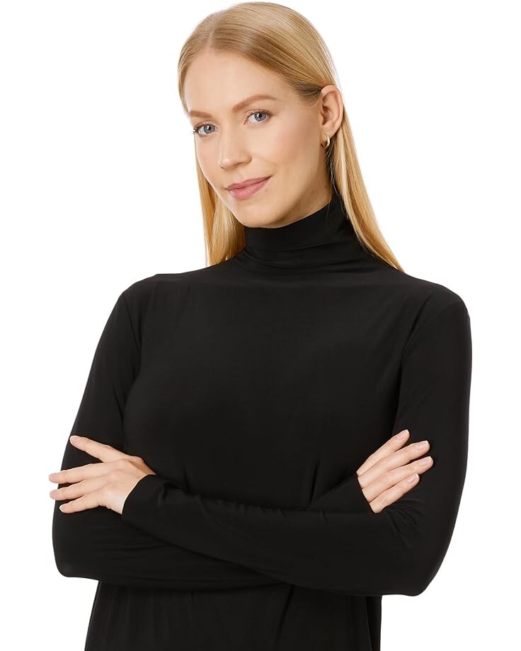 Чистый, современный стиль подчеркивается в платье-водолазке KAMALIKULTURE by Norma Kamali с длинным рукавом до колена из эластичного поли-джерси для удобства ношения.