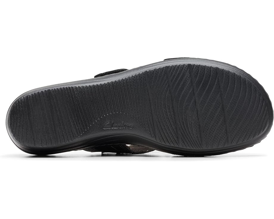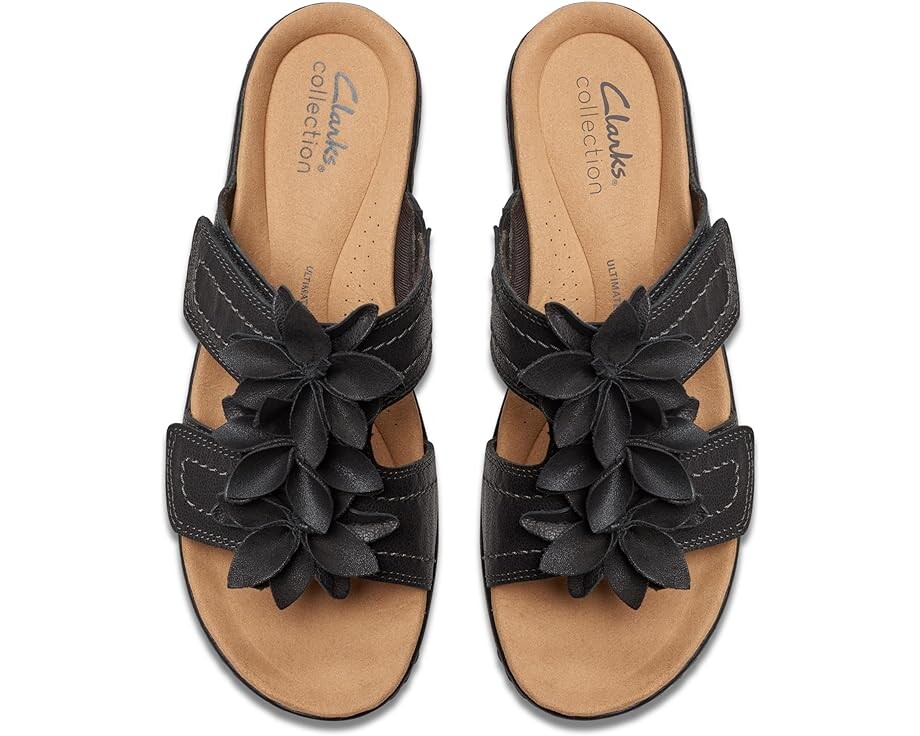 Вы будете выглядеть изысканно с головы до пят, сочетая элегантное платье с удобным платьем Clarks Merliah Raelyn. Эта пара сандалий, выполненная из кожи, с синтетической подкладкой и максимально комфортной стелькой из пеноматериала, украшена цветочными деталями на верху, открытым закругленным носком, застежкой на липучке и танкеткой.