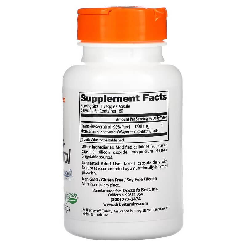 Транс-ресвератрол 600 содержит высококонцентрированный транс-ресвератрол из корня рейнутрии японской (Polygonum cuspidatum). Транс-ресвератрол — уникальный антиоксидант, способный преодолевать гематоэнцефалический барьер.