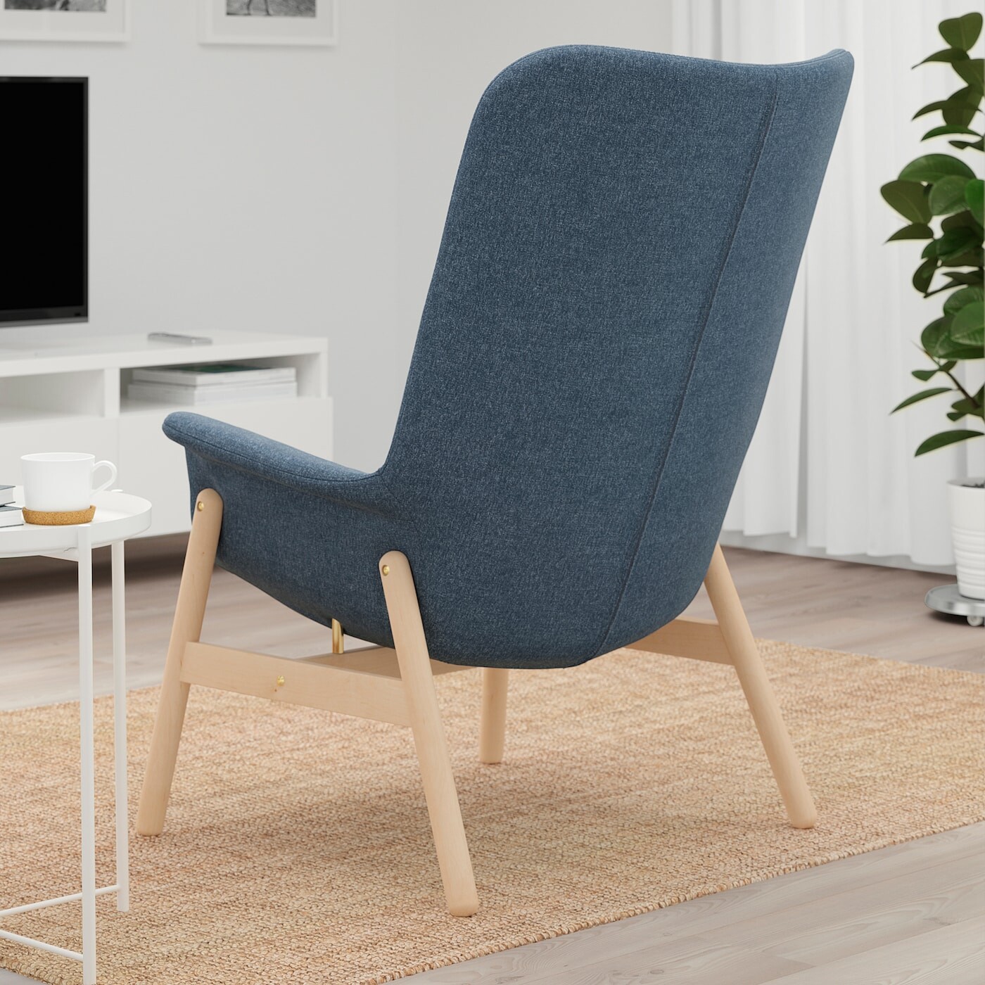 ВЕДБО Кресло с высокой спинкой - Гуннаред синий. Благодаря вневременному дизайну стула ВЕДБО он хорошо вписывается в разные помещения и может сочетаться с различной мебелью. Кресло для отдыха ВЕДБО хорошо подходит для общения с другими людьми, но также дает сидящему свое личное пространство.