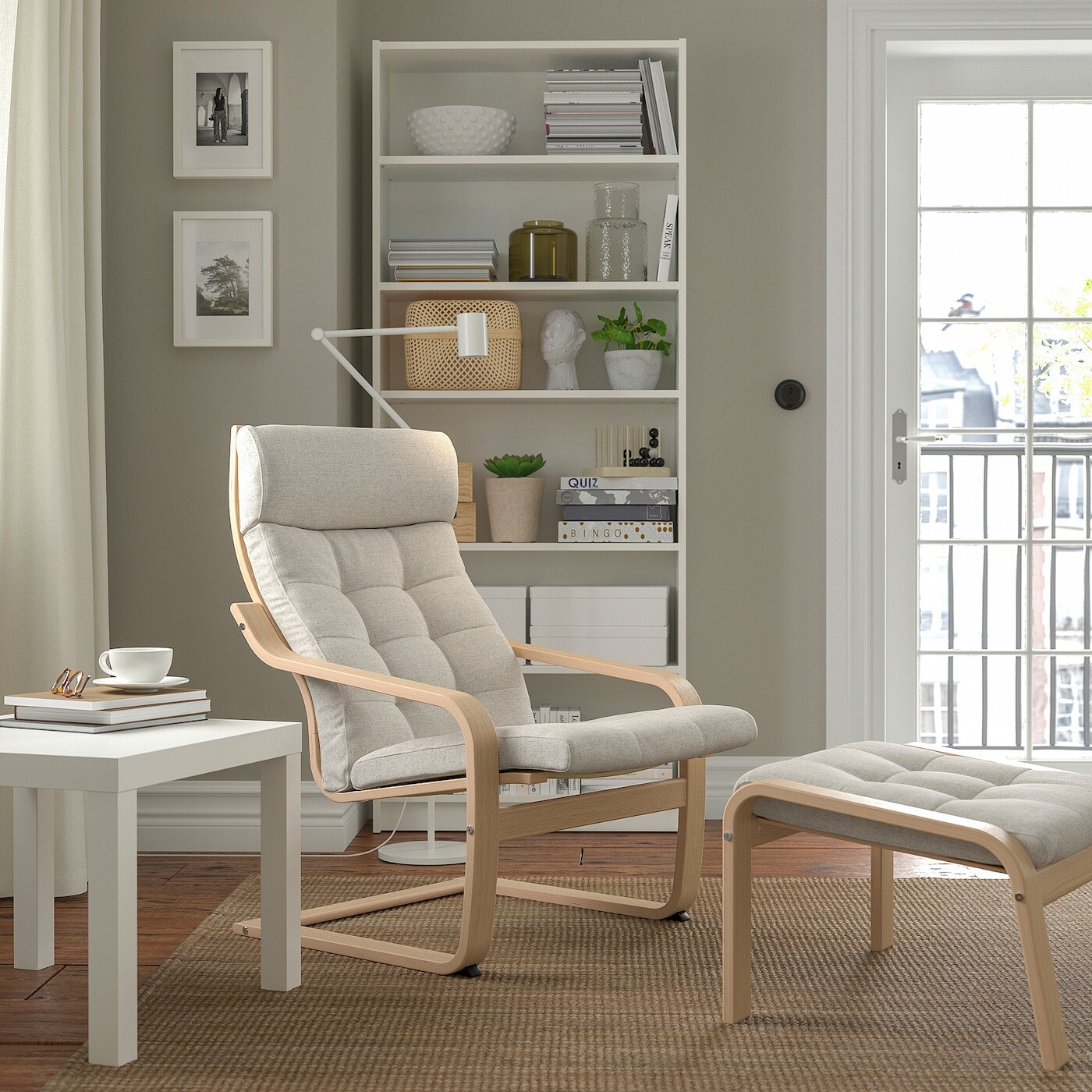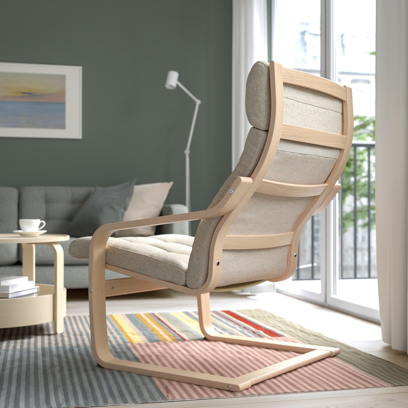 ПОЭНГ Кресло - дубовый шпон светлый/Гуннаред бежевый. Кресло имеет каркас из многослойной и гнутой древесины и высокую спинку. , который удобно сгибается и поддерживает шею - идеально подходит для расслабления.