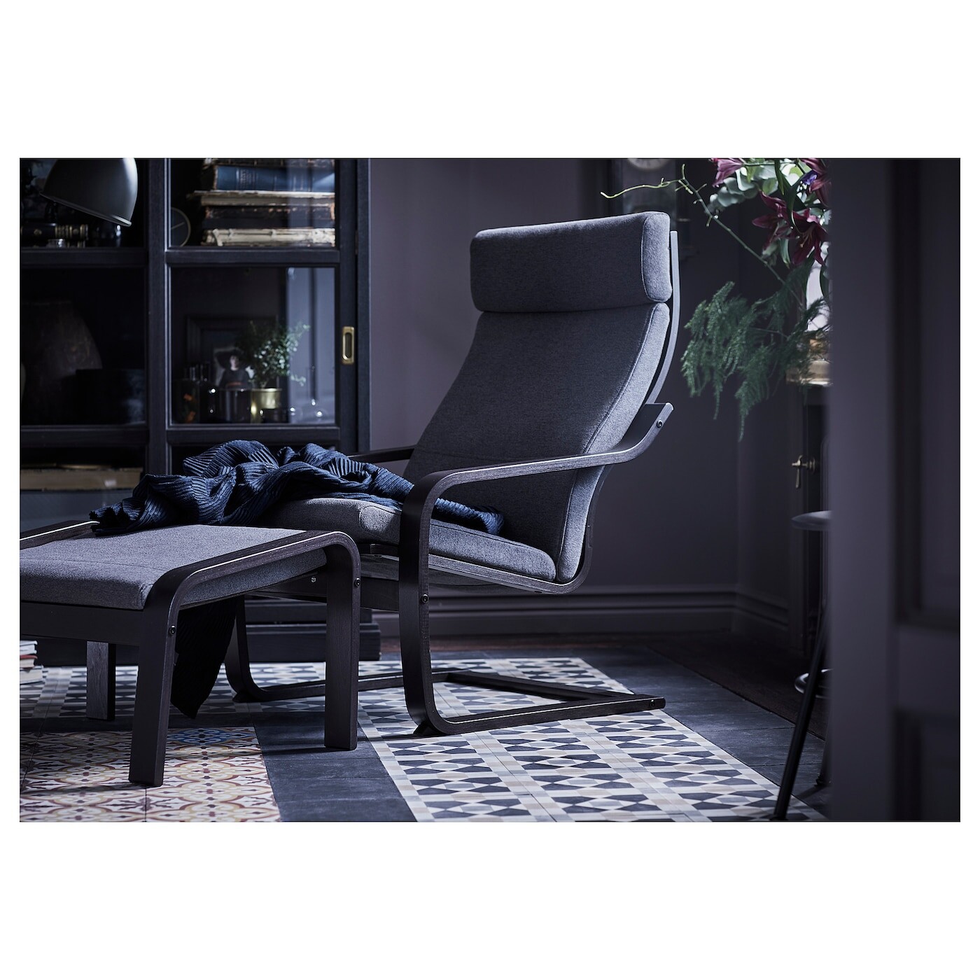 ПОЭНГ Кресло - черно-коричневый/Хилларед антрацит. Деревянная рама, склеенная слоями и изогнутая, делает кресло гибким. поэтому он идеально подходит для отдыха. Высокая спинка хорошо поддерживает шею.