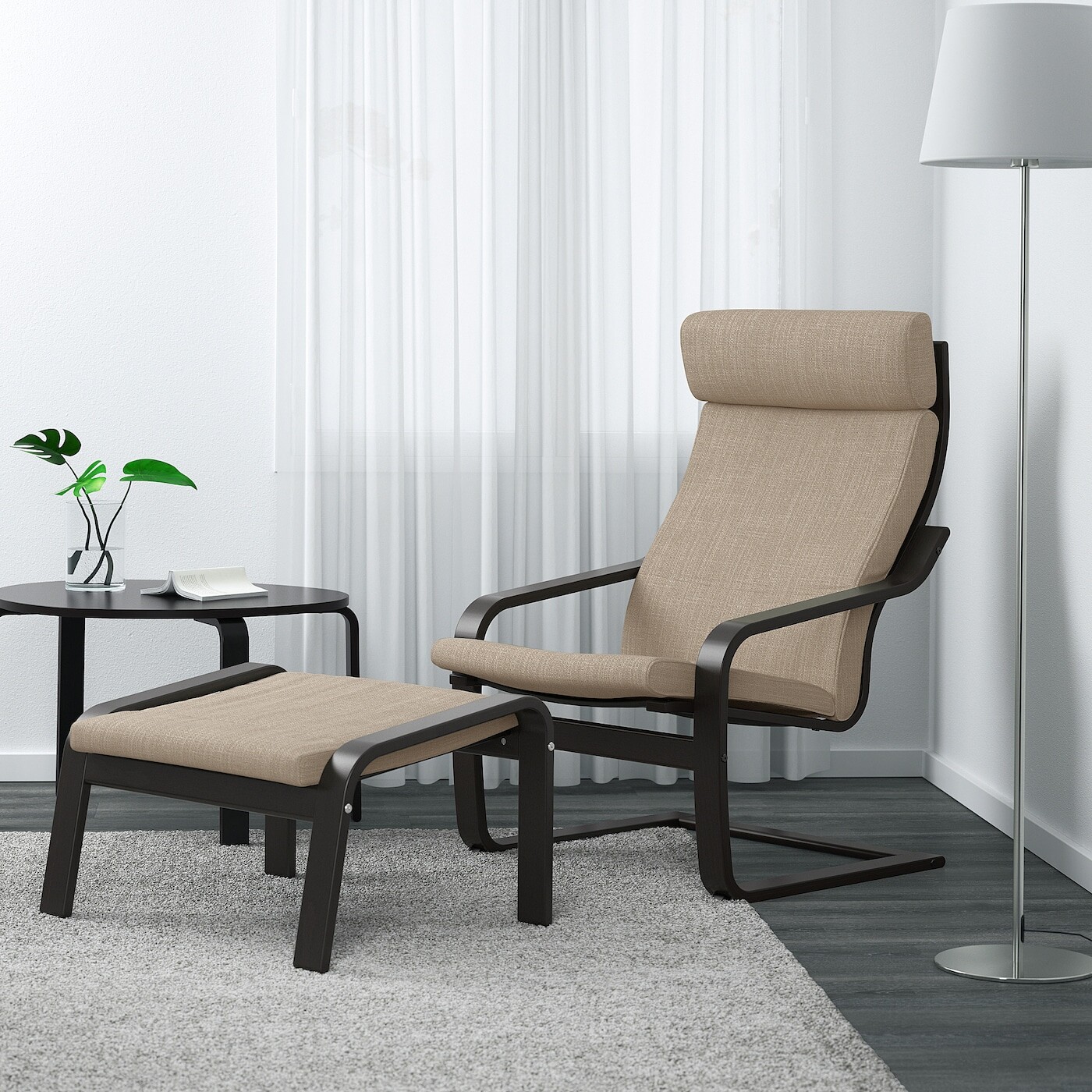 ПОЭНГ Кресло - черно-коричневый/Хилларед бежевый. Деревянная рама, склеенная слоями и изогнутая, делает кресло гибким. поэтому он идеально подходит для отдыха. Высокая спинка хорошо поддерживает шею.