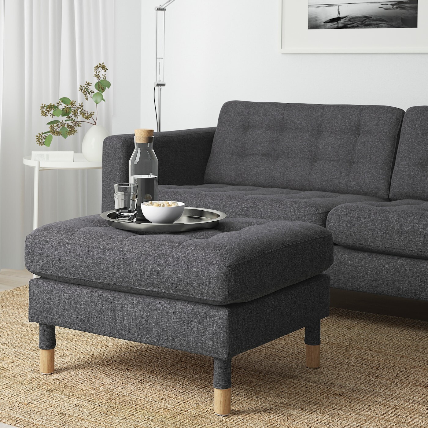 Рахи ЛАНДСКРОНА можно использовать как для отдыха ног, так и в качестве дополнительного сиденья. Дубовые ножки и броский тафтинговый чехол придают мебели элегантный вид. Поднимите ноги и расслабьтесь.
