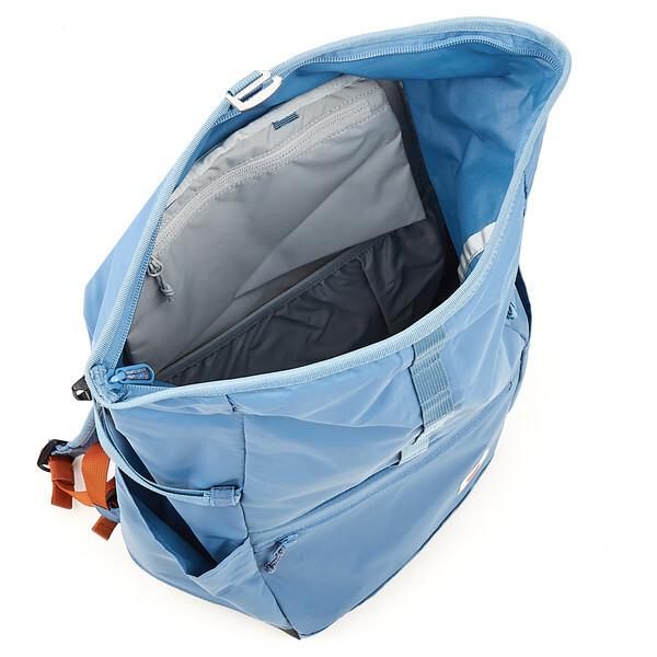 Универсальный рюкзак также впечатляет своей универсальностью в повседневной жизни. Таким образом, вы можете регулировать объем с помощью необычной складной застежки. Просто застегните молнию, откиньте крышку вперед и зафиксируйте ее на нужной высоте с помощью высококачественного металлического крючка. Имеется просторное переднее отделение для ценных вещей и всего, что должно быть под рукой. Эластичный накладной карман в главном отделении достаточно велик для ноутбука с диагональю 15 дюймов.