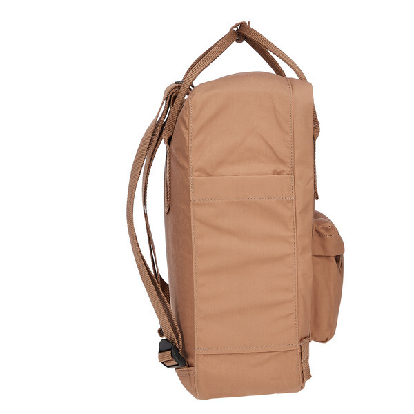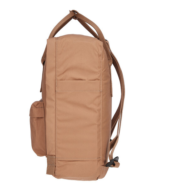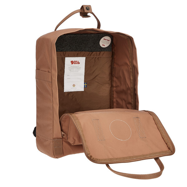 Kanken изготовлен из винилона F от Fjällräven. При намокании этот материал набухает, как натуральное волокно, и делает ткань водоотталкивающей. Поэтому покрытие не является необходимым. Еще одно преимущество: эта способность ткани сохраняется на протяжении всего срока службы Kanken.