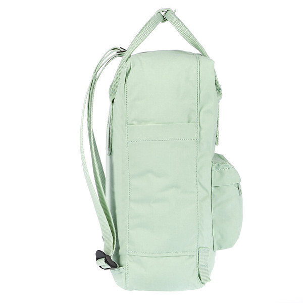 Kanken изготовлен из винилона F от Fjällräven. При намокании этот материал набухает, как натуральное волокно, и делает ткань водоотталкивающей. Поэтому покрытие не является необходимым. Еще одно преимущество: эта способность ткани сохраняется на протяжении всего срока службы Kanken.