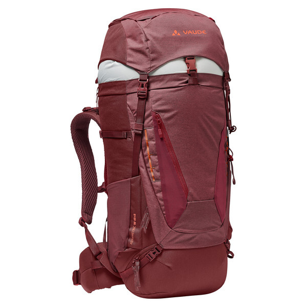 Достать содержимое рюкзака можно как классическим способом через открывающуюся крышку, так и через U-образная молния спереди. Внизу имеется отделение для спального мешка. Регулируемая по высоте крышка позволяет увеличить или уменьшить объем рюкзака с 48 до 56 литров. Эластичные боковые карманы сконструированы таким образом, что их содержимое можно носить с собой даже во время бега...