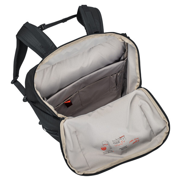 Особенность CityGo 30 II заключается в том, что его можно использовать с Vaude Вы можете подключить комплект Light Me Up Kit (см. аксессуары). В комплект входят две защищенные от атмосферных воздействий светодиодные трубки, которые вставляются в направляющую на передней панели CityGo 30 II, и разъем USB...