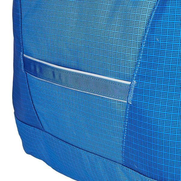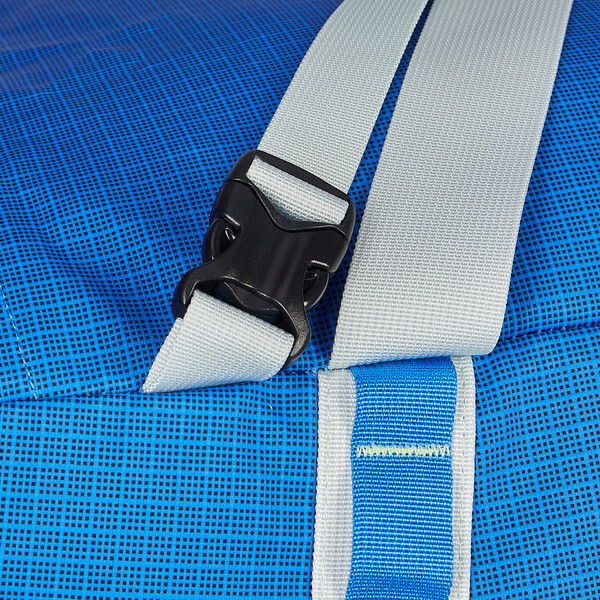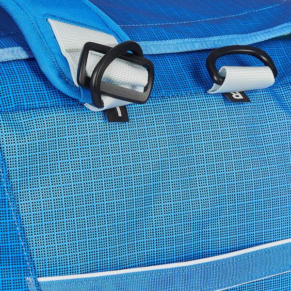 Основной материал устойчивой к истиранию дорожной сумки обладает высокими водоотталкивающими свойствами благодаря покрытию из ТПУ. Основание и боковые стенки дополнительно усилены, а в качестве точек фиксации по всему периметру используются цепочки и ручки.