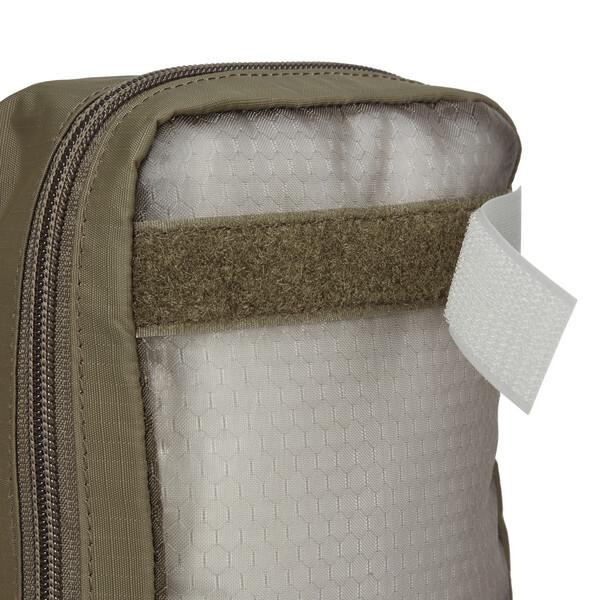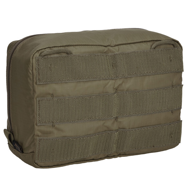 Сзади имеются липучки и две петли, с помощью которых можно вставлять или надевать упаковочные пакеты. рюкзаки с петлями или системой MOLLE. Обе сумки также имеют спереди «слепую липучку».