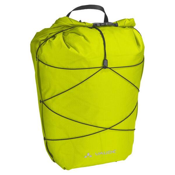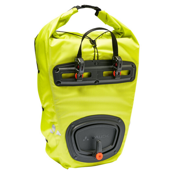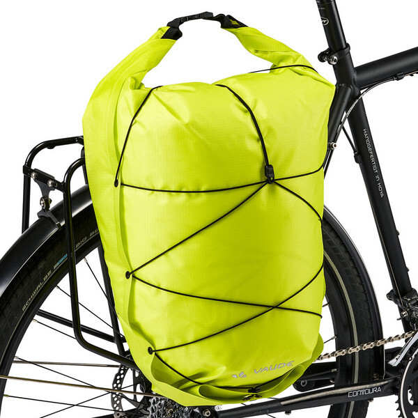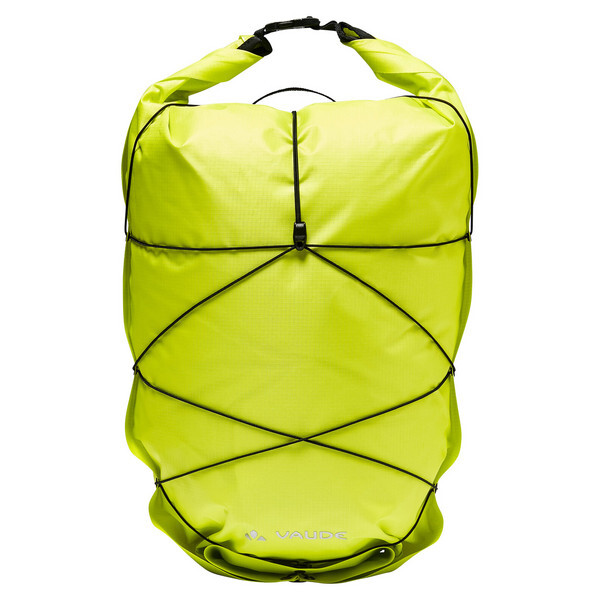 Используется износостойкая полиамидная ткань 100D. Он прочный, но легкий и защищает багаж от воды и пыли. Упакованные предметы можно дополнительно уменьшить в размерах с помощью компрессионных ремней. Это означает, что ничто не помешает кататься на велосипеде в течение нескольких дней в плохую погоду.