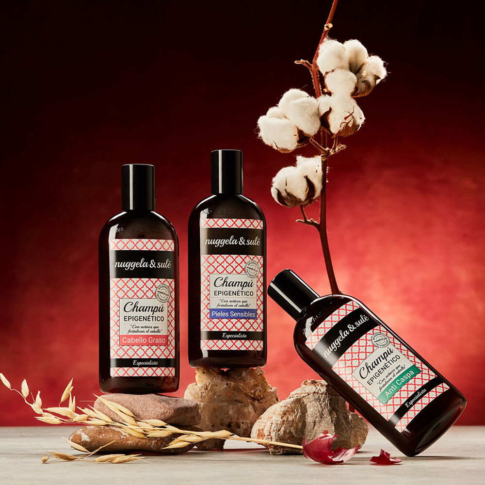 Шампунь против перхоти EPIGENETICO от Nuggela & Sulé. Перхоть, как правило, возникает из-за заболеваний кожи головы и может вызывать раздражение и зуд — состояния, которые также могут влиять на волосяной фолликул, вызывая слабость капилляров и выпадение волос. Эпигенетический шампунь, специализирующийся на решениях против перхоти, способен устранить и предотвратить как жирную, так и сухую перхоть, а благодаря своему эпигенетическому действию укрепить волосы и улучшить их качество.