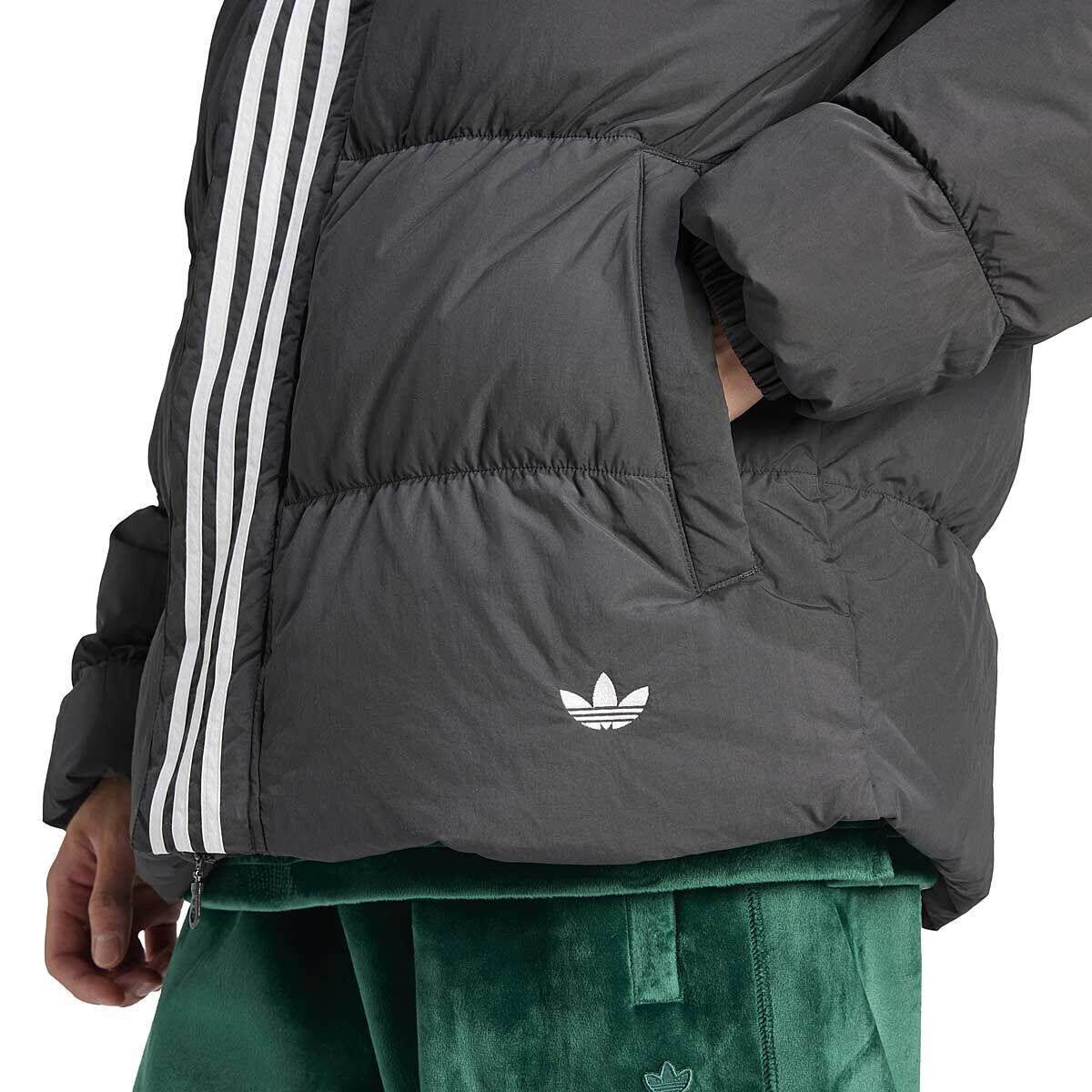 Сохранять тепло и при этом выглядеть круто - вот высшее достижение этой утепленной куртки adidas. Гладкий нейлоновый верх, карманы на молнии и штормовой клапан на капюшоне гарантируют, что зимние стихии не сравнятся с ее техническими талантами. Три полоски, идущие спереди, делают твою приверженность бренду очевидной.
