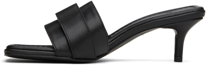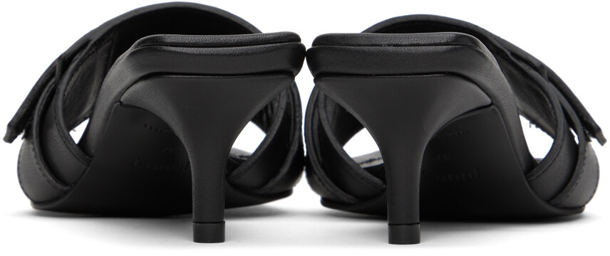 Многослойные кожаные босоножки на каблуке черного цвета.
