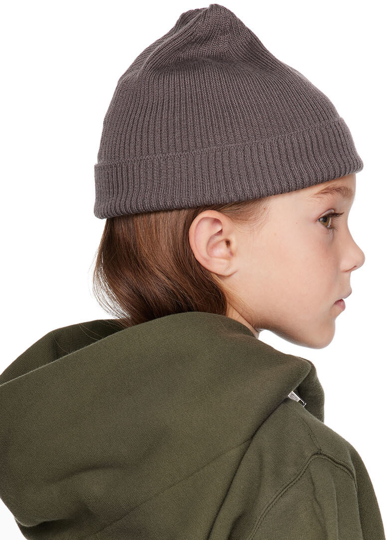 Легкая кашемировая шапка в рубчик серого цвета. Круглые поля.