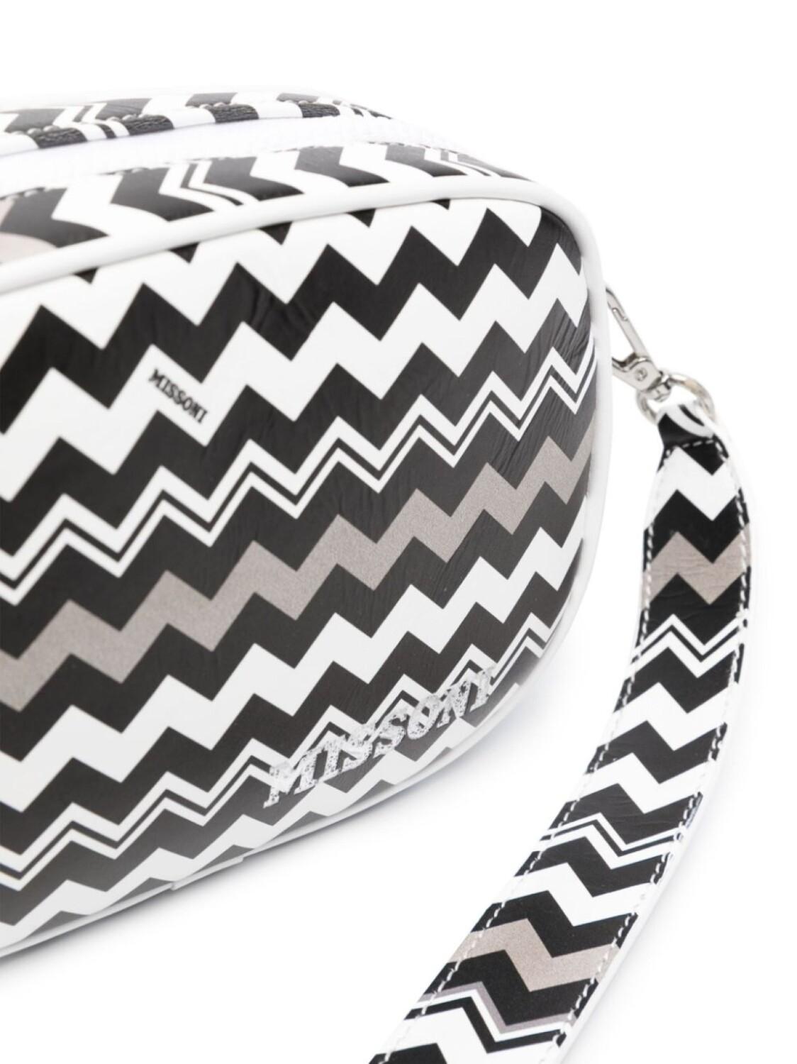 Черный/белый, телячья кожа, зигзагообразный принт, логотип спереди, съемный ремень на плечо, застежка на молнии сверху и основное отделение. Эта модель, как и другие вещи Missoni, выполнена вручную, поэтому товар может незначительно отличаться от фотографий на сайте.