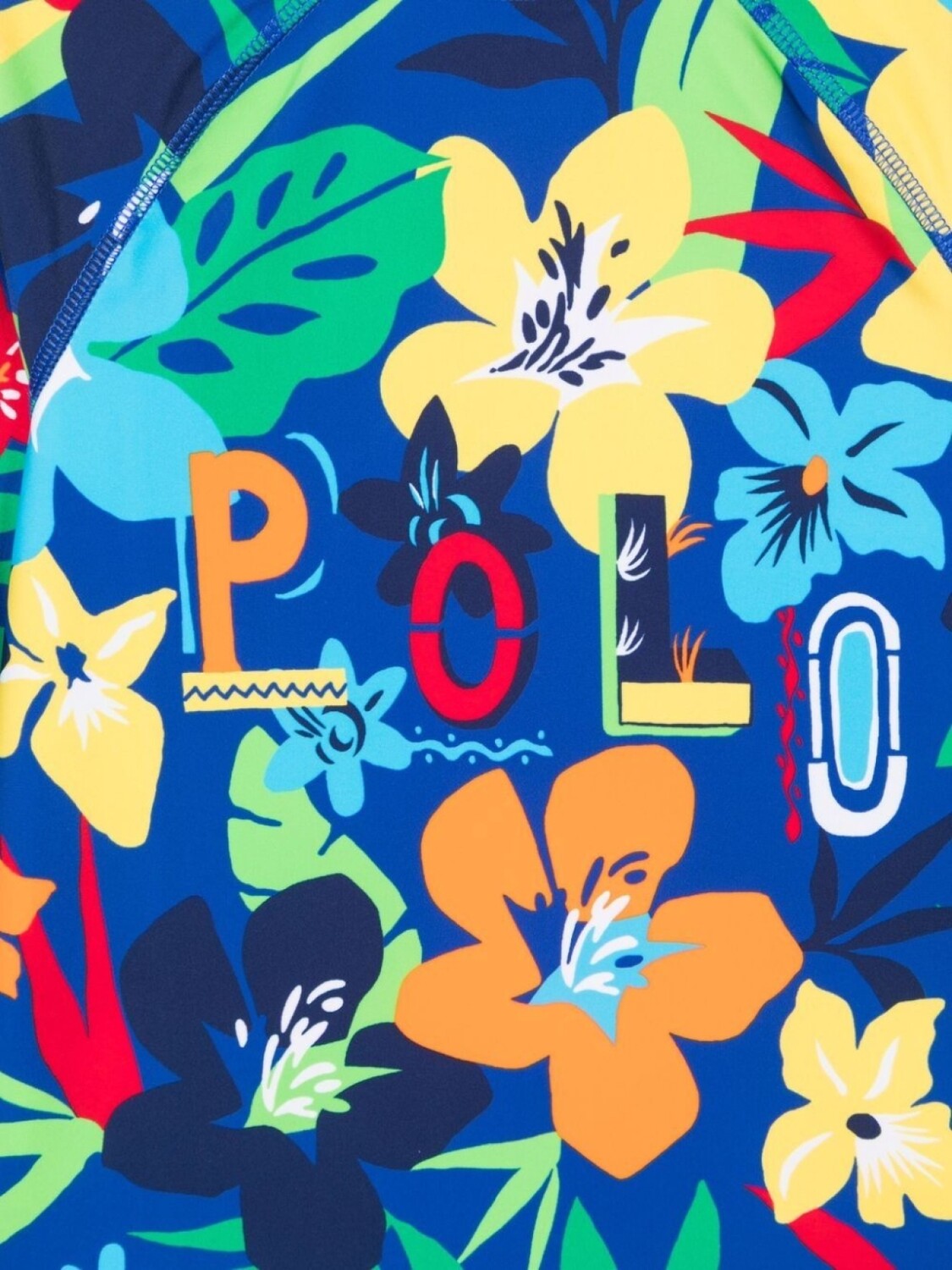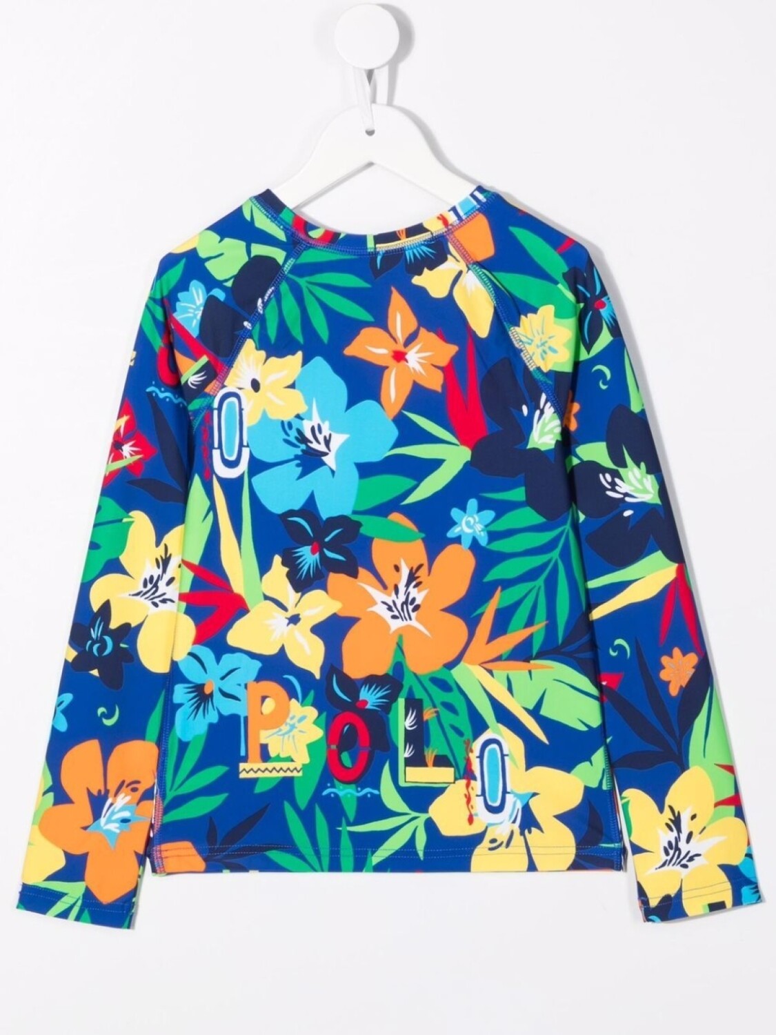 Сплошной цветочный принт, принт с изображением пальм, логотип спереди, круглый вырез, длинные рукава и прямой подол. Цвет: разноцветный.