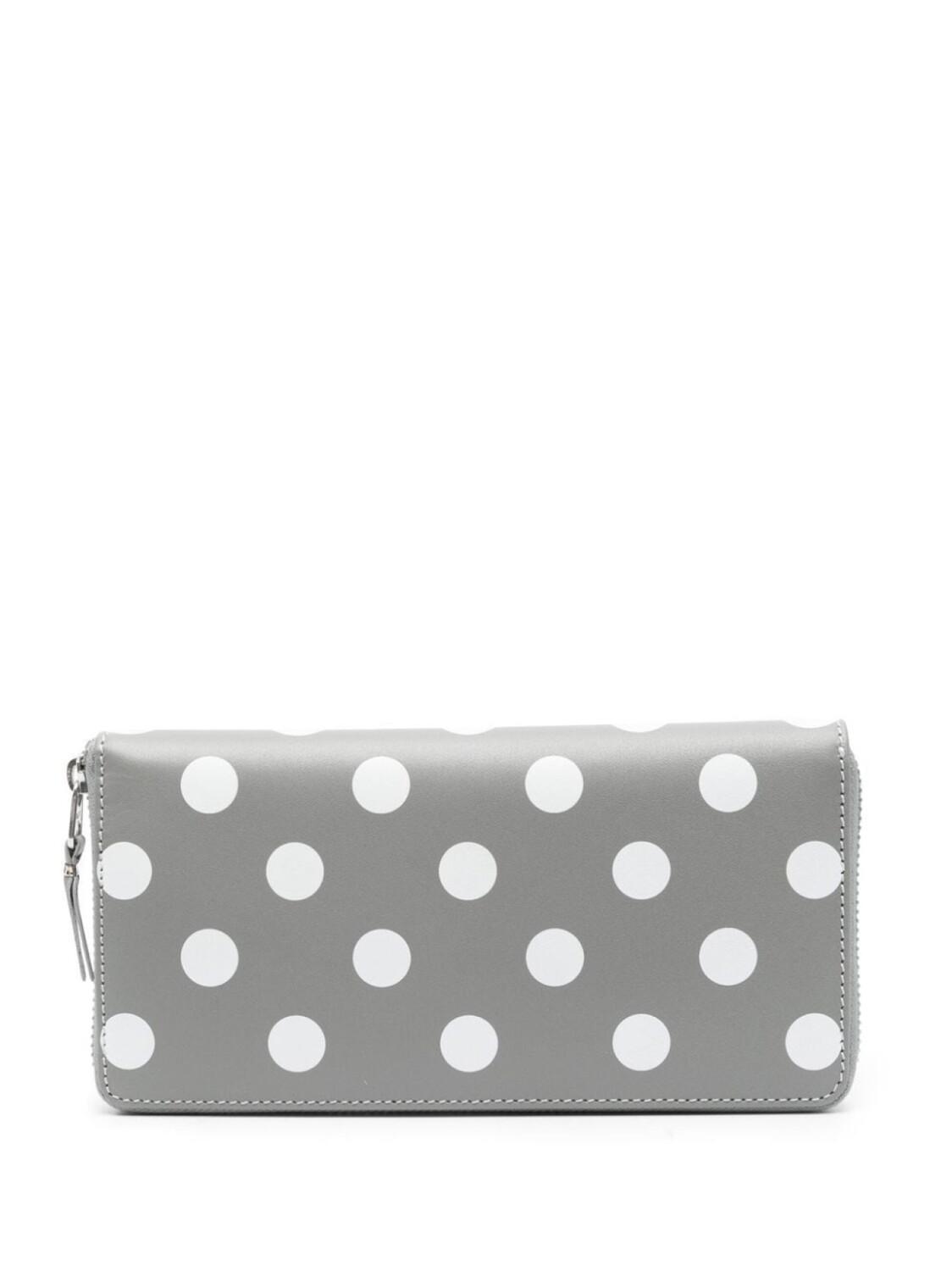 Серый с белым кошелек из гусиной кожи в горох от Comme Des Garçons Wallet.Модель в стиле унисекс.