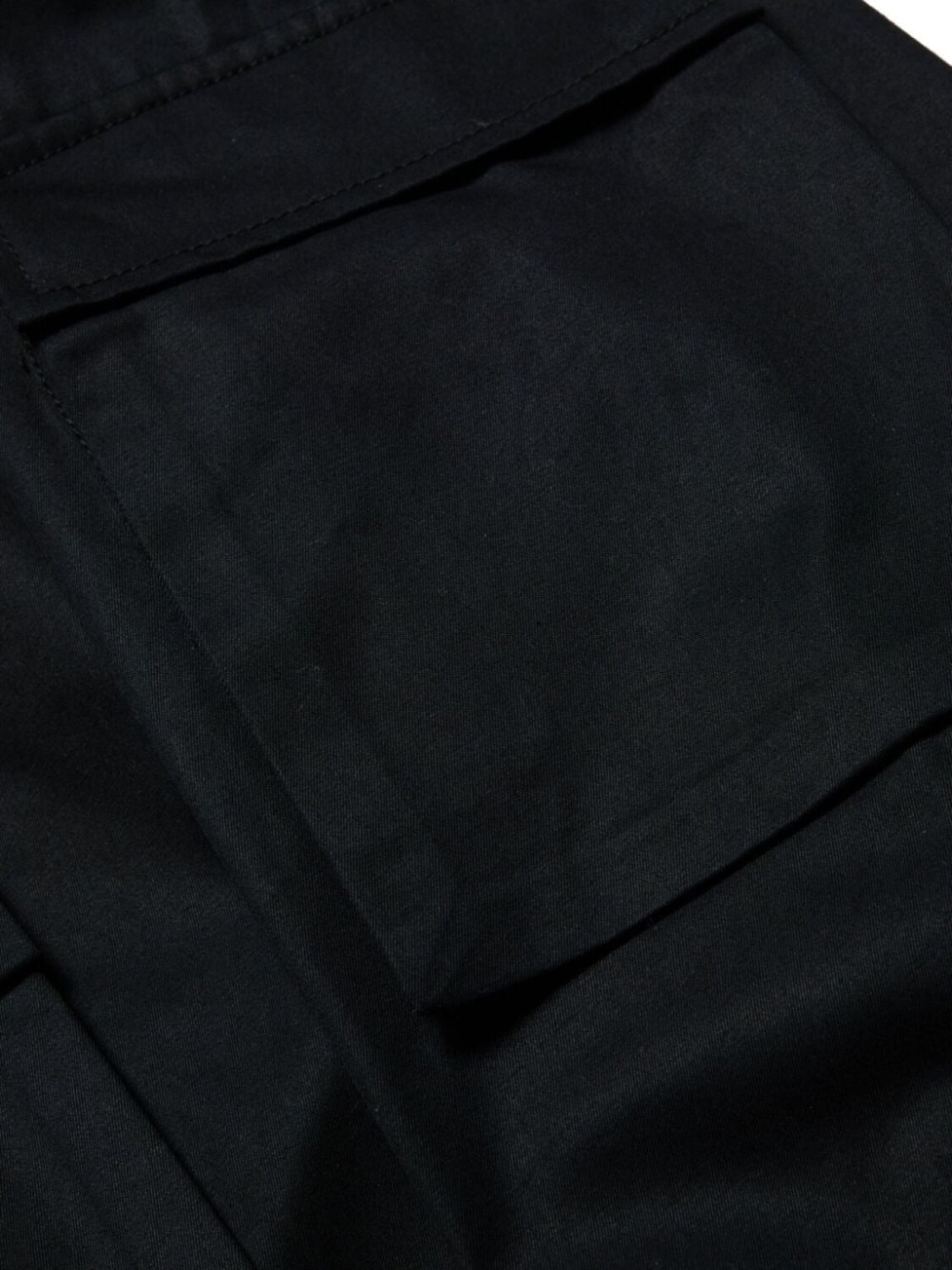 Черный, хлопок, знаковый узор с цифрами, вышитый логотип сзади, эластичный пояс, карман с клапаном сбоку, зауженный крой, накладной карман сзади и эластичный подол.