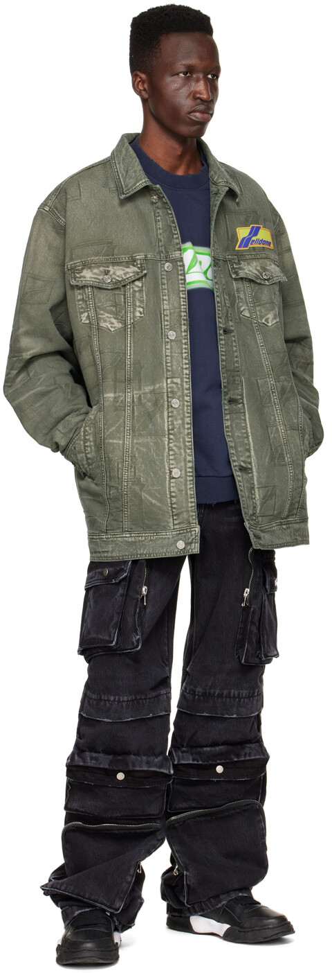 Джинсовая куртка цвета хаки с жаккардовым логотипом We11done