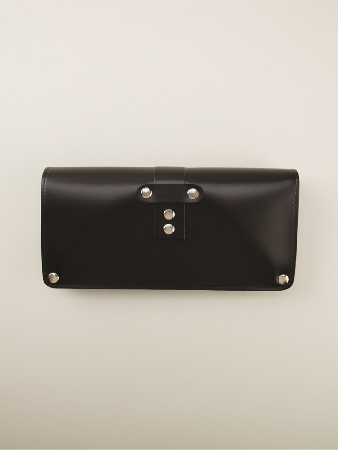 Черный, телячья кожа, откидной верх, застежка на пряжке, основное отделение, внутренние отделения для карт, серебристая фурнитура