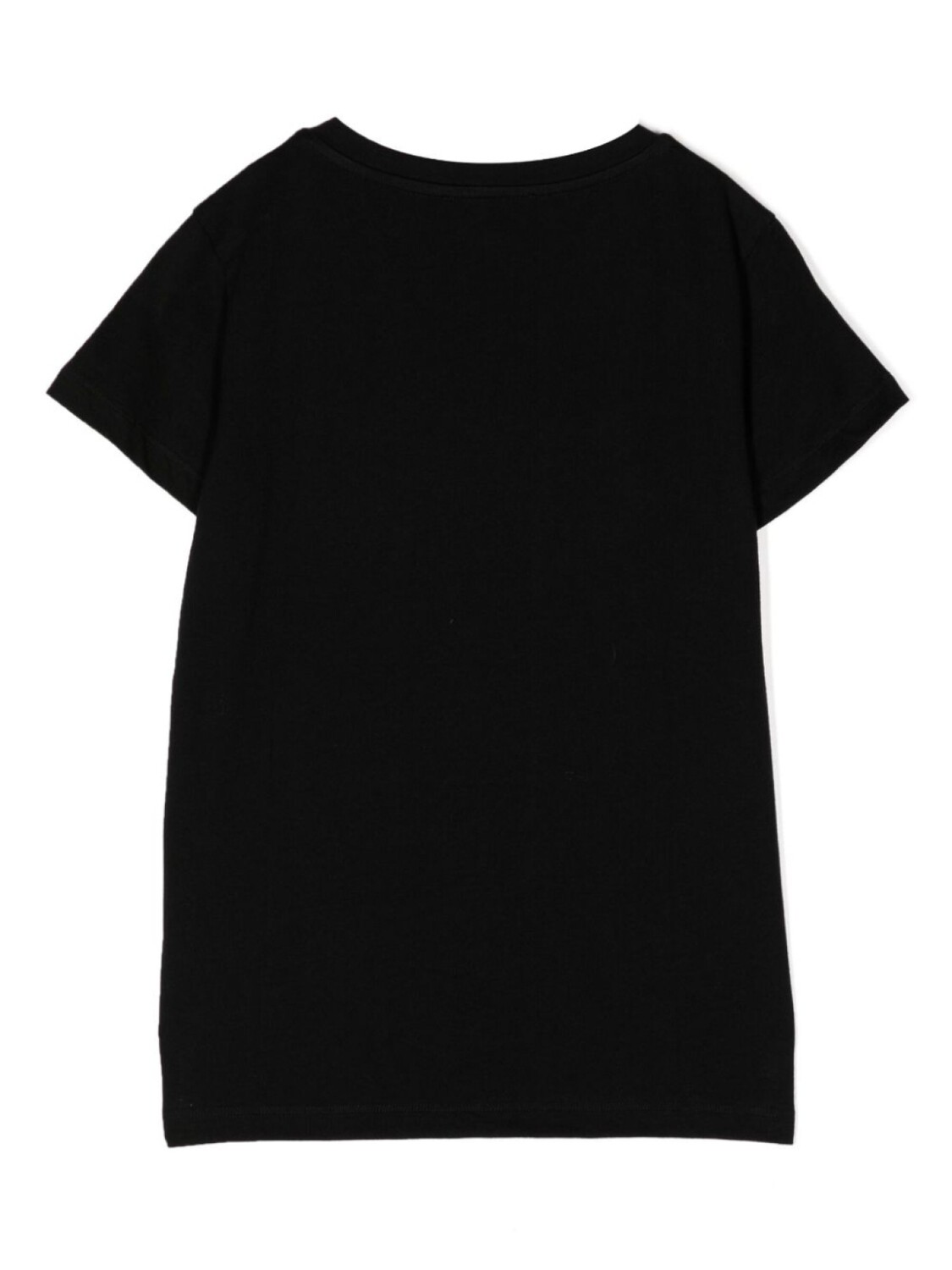 Черный, хлопок, логотип спереди, украшения из горного хрусталя, круглый вырез, короткие рукава и прямой подол.