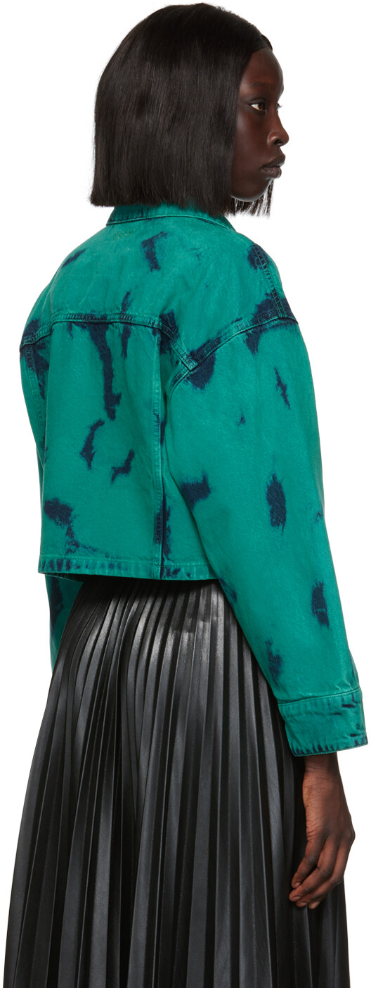 Неэластичная джинсовая куртка. Узор тай-дай по всей поверхности.