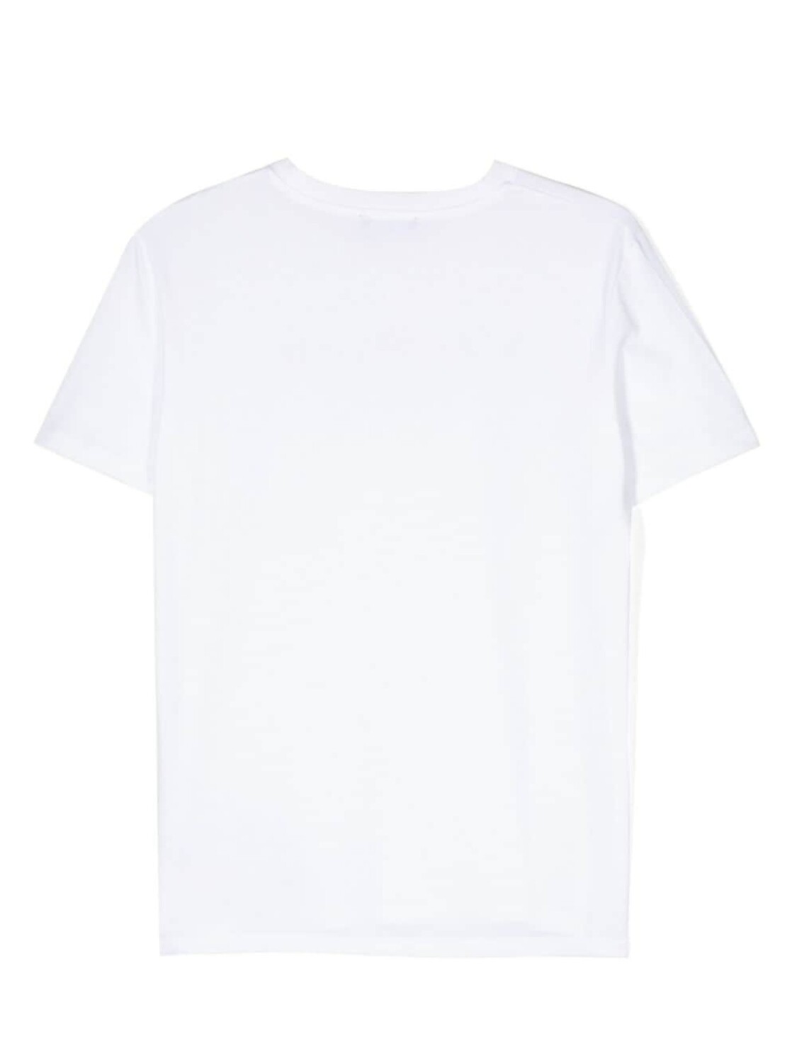 Белый, хлопок, мягкий джерси, круглый вырез в рубчик, короткие рукава, логотип спереди, принт с эффектом металлик, прямой подол, модель без застежки