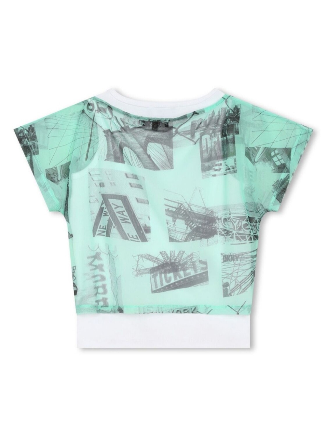 Зеленый, черный/белый, эластичный хлопок, сплошной графичный принт, круглый вырез, короткие рукава, прямой подол