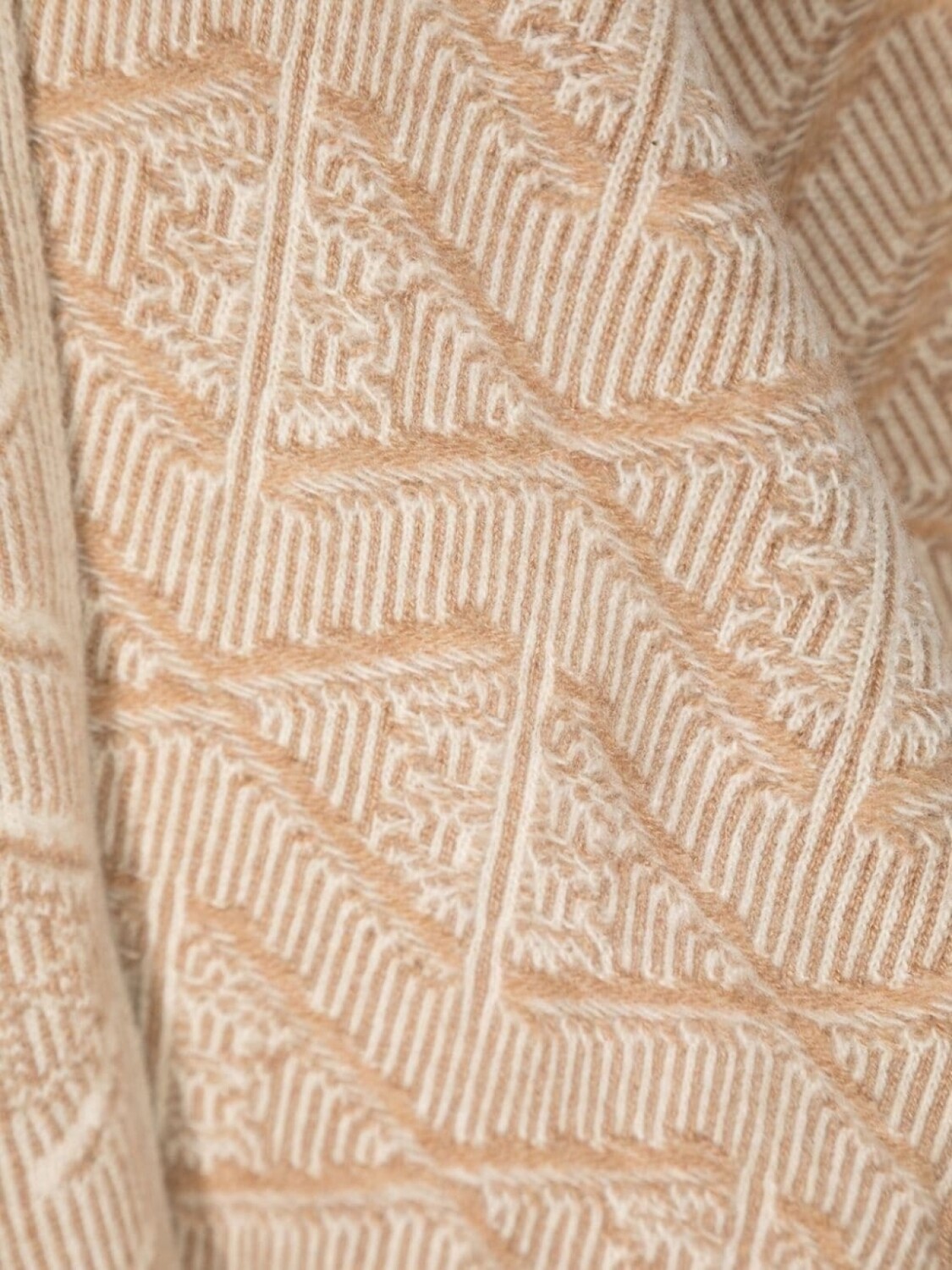 Коричневый, кашемир, овечья шерсть, логотип в технике интарсия, сплошной принт с логотипом и прямоугольная форма.