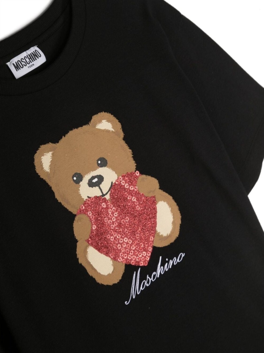 Черный/разноцветный, смесовый хлопок, украшение из пайеток, логотип спереди, декор Teddy Bear, круглый вырез и короткие рукава.