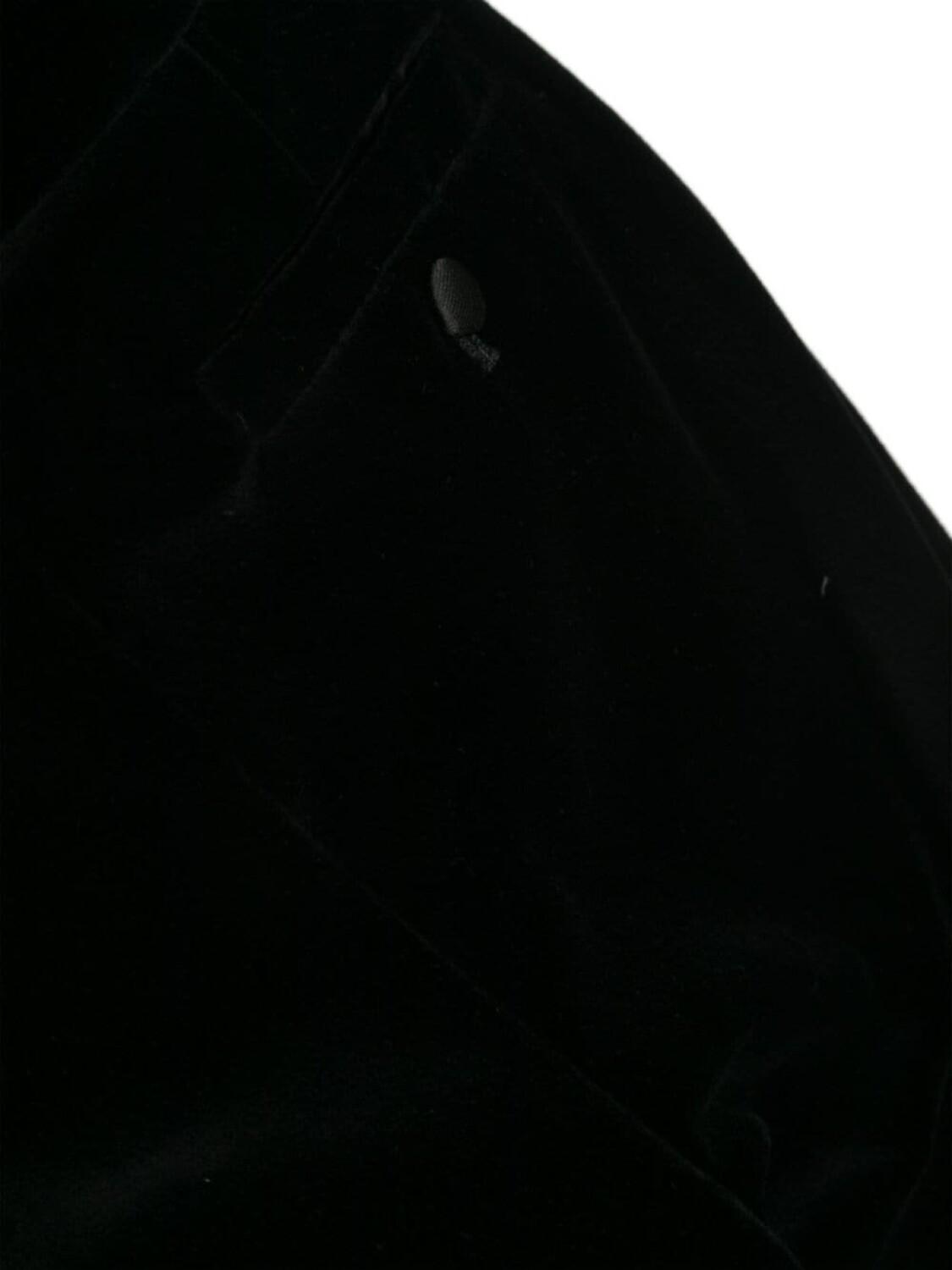 Подробнее о товаре: • черный • хлопок • бархат • атласная отделка • защипы • обтянутые тканью пуговицы • зазубренные лацканы • подплечники • длинные рукава • манжеты с декоративными пуговицами • шлица по центру сзади • прорезной карман на груди • два передних кармана с клапанами • застежка на пуговицах спереди • закругленный подол • средняя посадка • прямой крой • два вшитых кармана по бокам • карман на пуговице сзади • петли для ремня • ширинка на молнии • застежка на пуговицах спереди • модель без подкладки