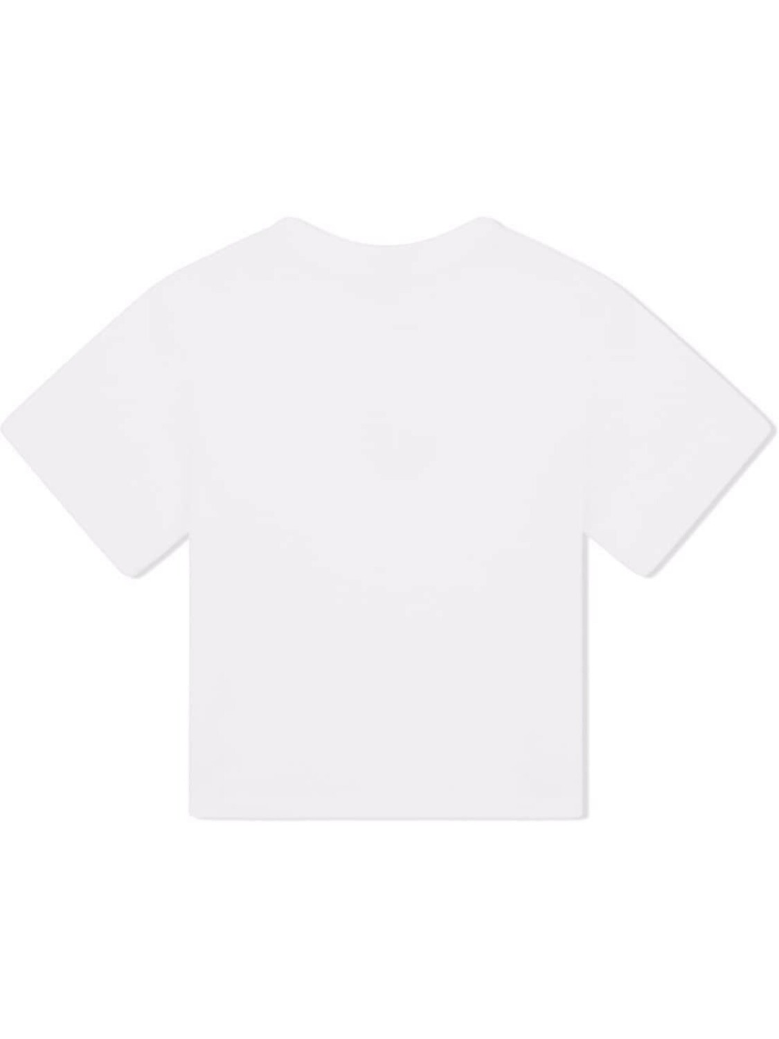 Металлический логотип, круглый вырез, короткие рукава и прямой подол. Цвет: белый.