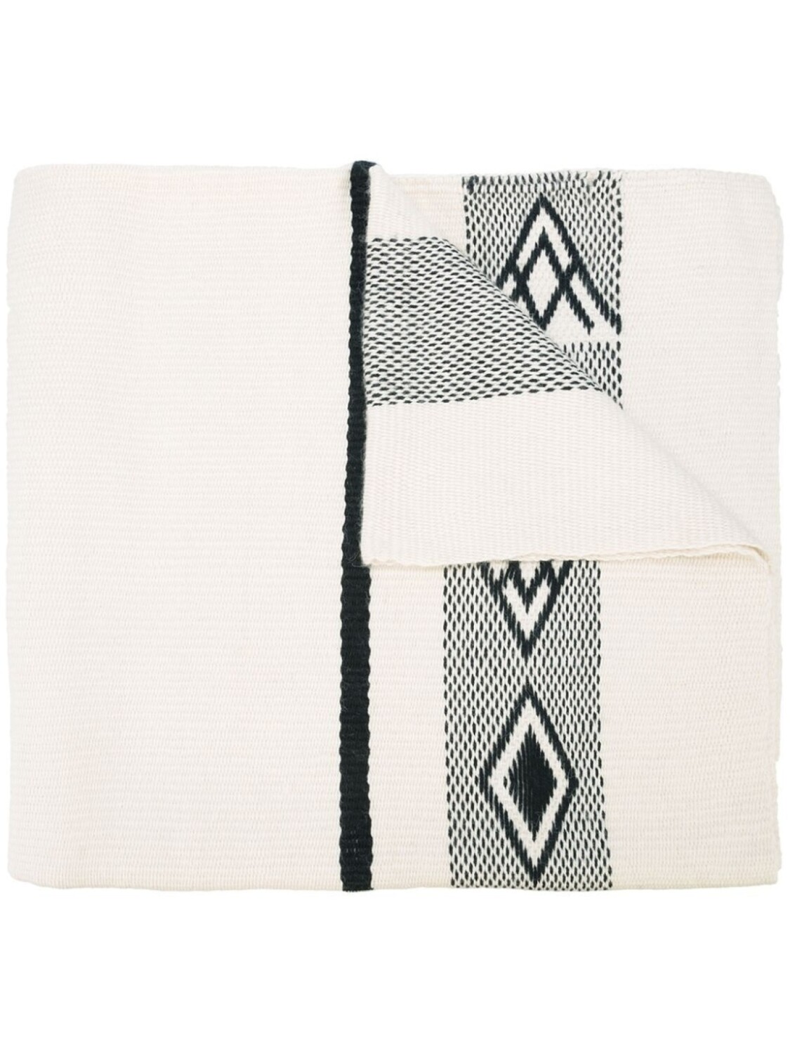 Белый широкий диагональный шарф из шерсти ламы с запахом от VOZ. POSITIVELY CONSCIOUS: Мы объединились с агентством Good On You, которое составляет рейтинг ответственных брендов. Этот бренд получил отметку «Ответственный выбор», потому что отвечает ключевым стандартам агентства.