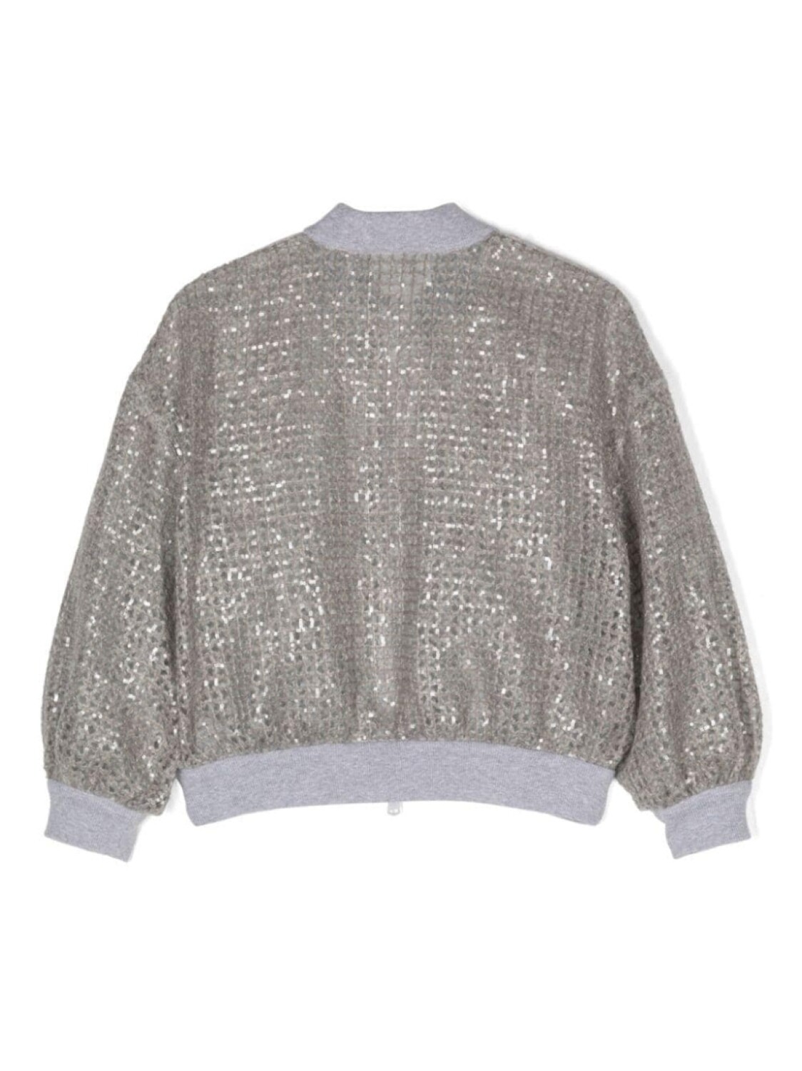 Brunello Cucinelli Kids бомбер на молнии с пайетками, серый