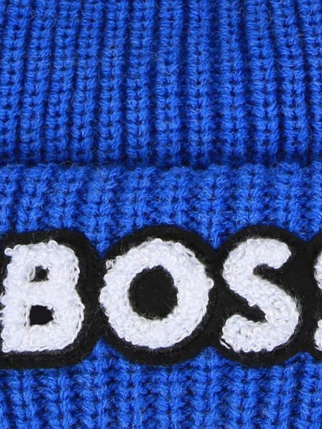 BOSS Kidswear шапка бини в рубчик с нашивкой-логотипом, синий